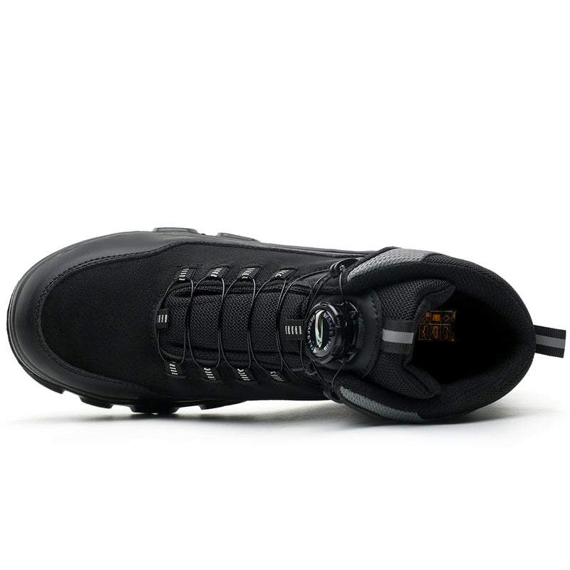 This men's safety shoe adopts a high-strength steel head design to effectively resist the impact of heavy objects and ensure foot safety. The sole adopts a puncture-proof design, suitable for cycling, outdoor hiking, construction sites, factories and other high-risk environments, providing all-round protection for your feet.